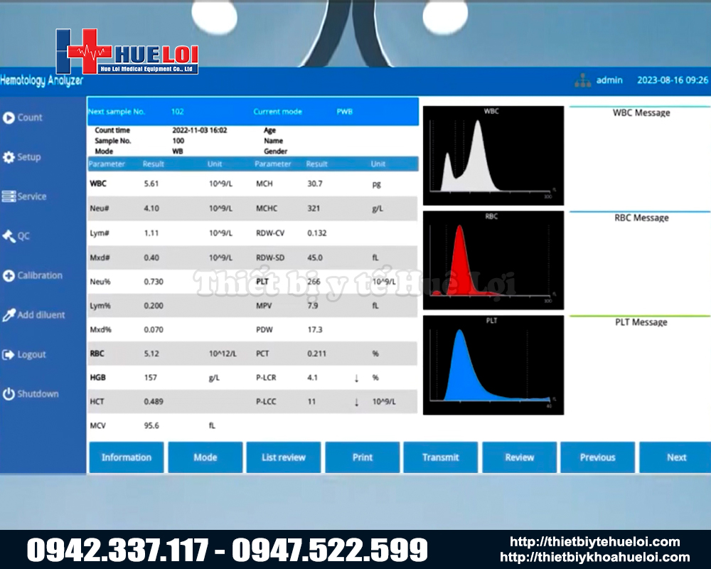 - Chế độ mẫu: máu toàn phần (tĩnh mạch / mao mạch), tiền pha loãng